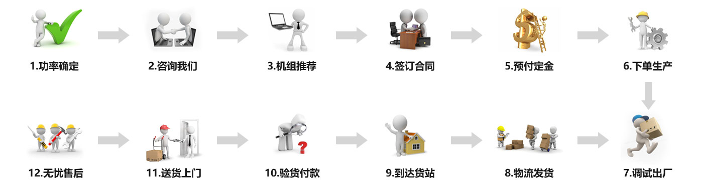 本公司提供了經多年積累的售后服務工作經驗,包括人員培訓、定期回訪和保修承諾等,對發(fā)電機組定期維護保養(yǎng)和維護。